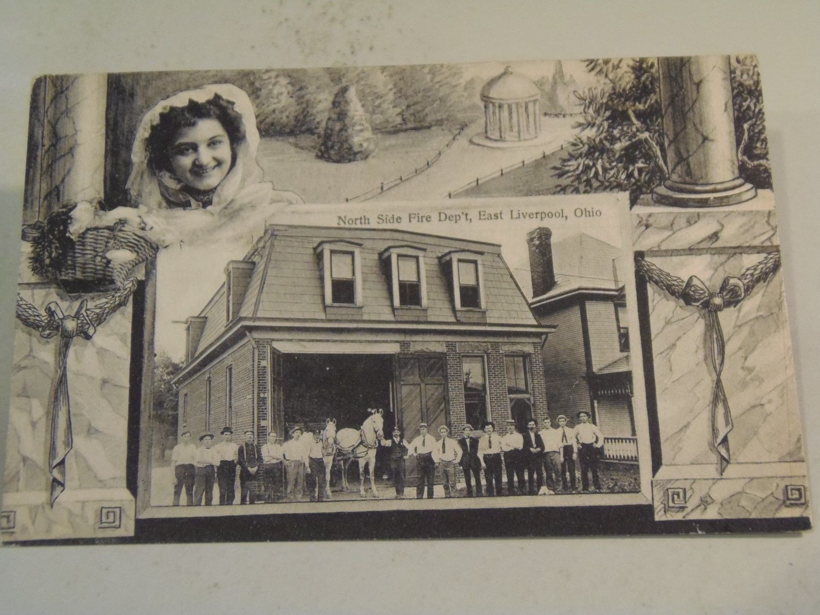 North Side Fire Dep''t, East Liverpool, Ohio Postcard Girl in Upper Left Corner