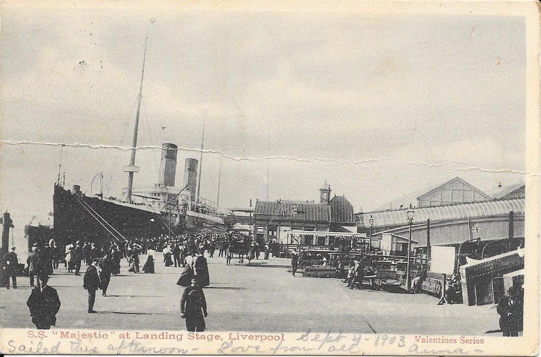 Title (ebay affiliate link): ANTIQUE 1901-1903 POSTCARD - S.S. "MAJESTIC" AT LANDING STAGE, LIVERPOOL ENGLAND
