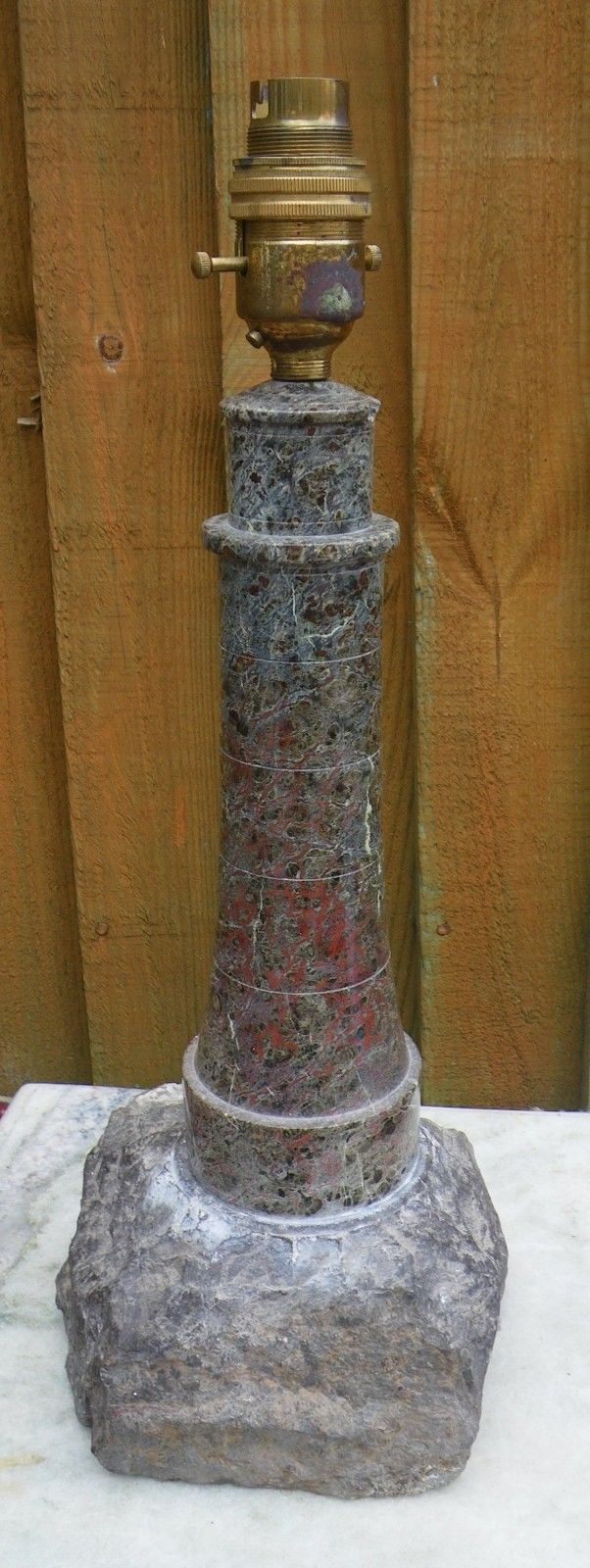 VINTAGE LARGE DECORATIVE 12" CORNISH SERPENTINE LIGHTHOUSE LAMP BASE~REDS/GREYS