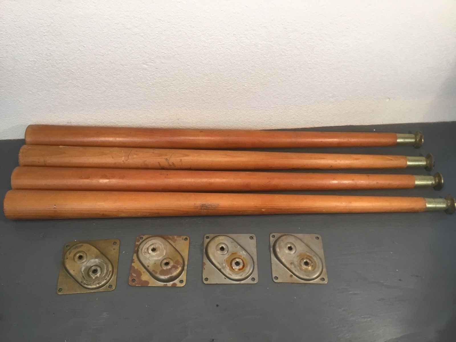 Title (ebay affiliate link): Vtg Mid Century Tapered Wood Wooden Table Legs Furniture w/Brackets Set of 4