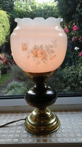 Title (ebay affiliate link): Attractive vintage brass electric style oil lamp with white patterned shade