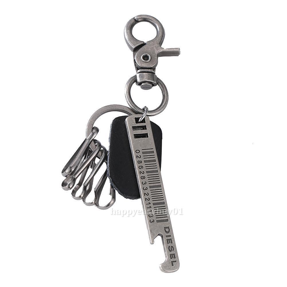 New Men Vintage Plated Ruler Keyring Alloy Leather Waist Buckle Keychain Gift