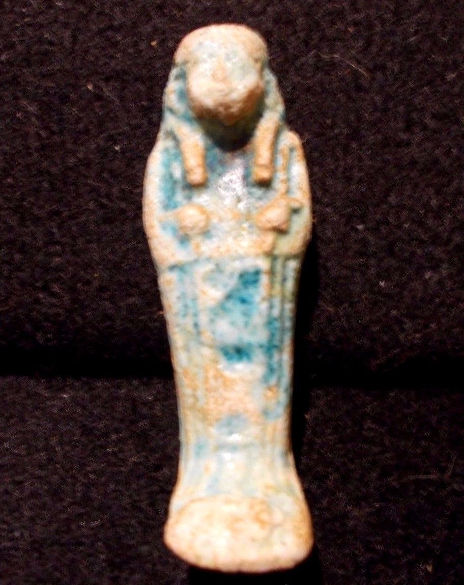 EGYPTIAN FAIENCE SHABTI FUNERAL STATUE.