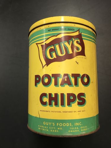 Vintage 12 OZ. GUY''S Potato Chip Advertising Tin Can