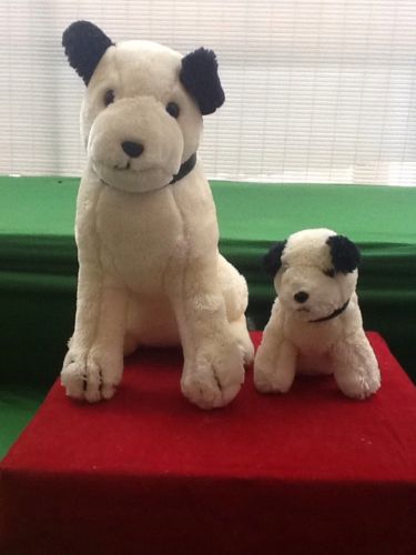 Title (ebay affiliate link): 1993 DAKIN RCA nipper and chipper plush dog set 12 inches and 6 inches