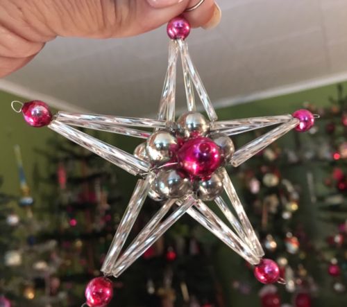 Title (ebay affiliate link): Vintage MERCURY GLASS 3-D Star Christmas Ornament: SILVER / HOT PINK