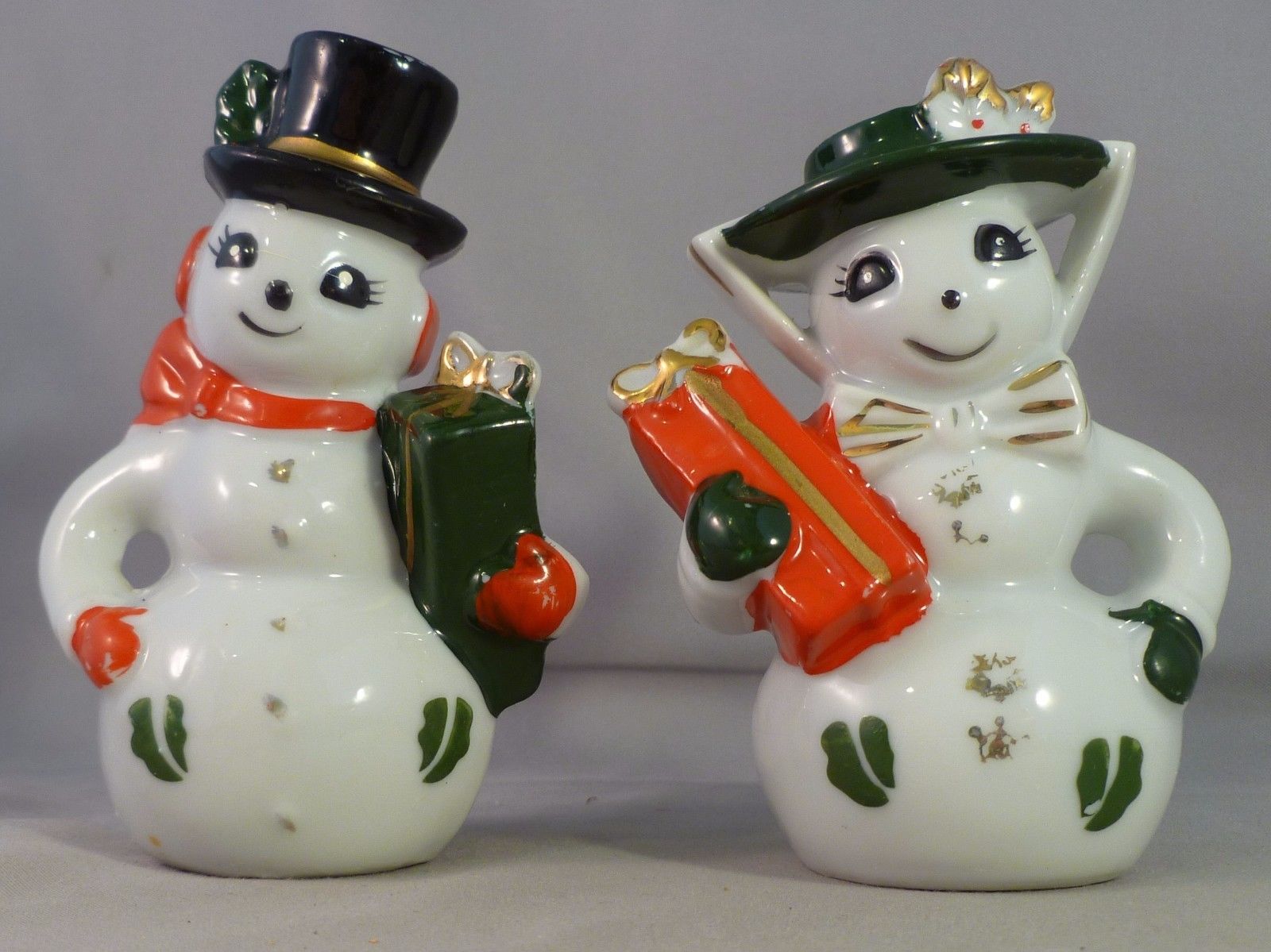 Vintage Christmas Mr & Mrs Snowman Salt & Pepper Shakers, Japan