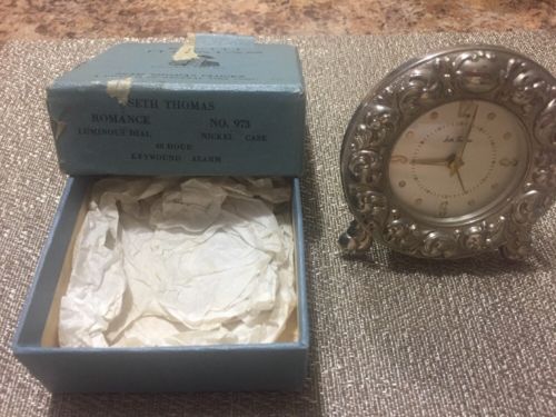 Title (ebay affiliate link): Vintage/antique Seth Thomas Fine Keywound Clock No 973 Silver In Original Box