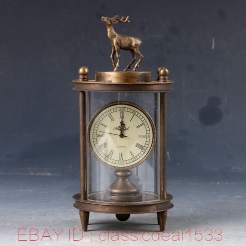 Vintage Collectible Old Chinese Brass Handwork Deer Mechanincal Globe Clock