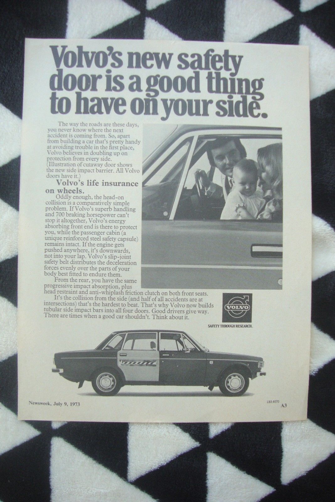 Title (ebay affiliate link): 1973 Volvo 144 Sedan SAFETY DOOR Aussie Original Magazine Advertisement
