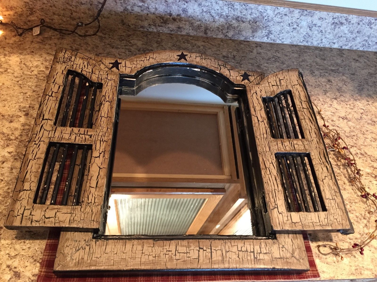 Title (ebay affiliate link): PRIMITIVE CRACKLE WOOD FRAME MIRROR WITH STUTTERS BLACK STAR COUNTRY DECOR