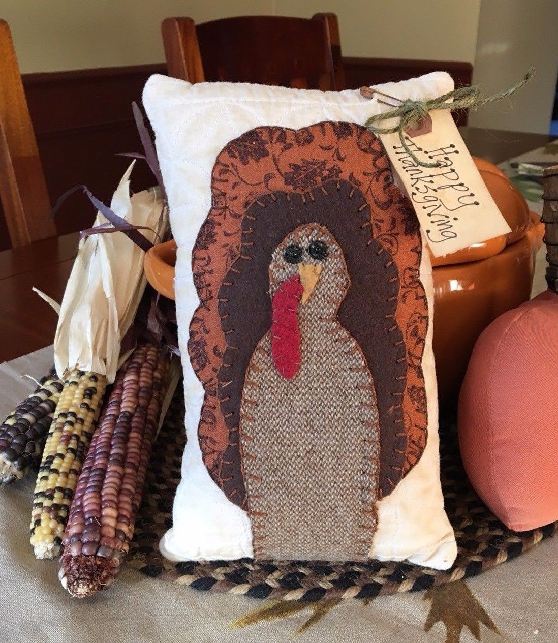 Title (ebay affiliate link): PILLOW TURKEY- Primitive Thanksgiving Bowl Filler - Folk Art Fall Stitchery