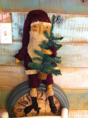 Title (ebay affiliate link): Primitive Folk ARt Santa Doll with Christmas tree Burgundy 22" tall