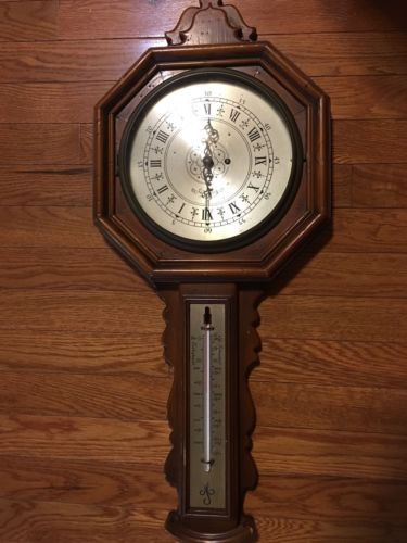 Title (ebay affiliate link): ANTIQUE P F BOLLENBACH Right Day Wall Clock and Thermometer Vintage