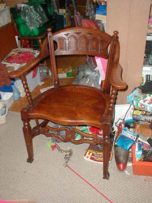 Title (ebay affiliate link): Vintage Walnut Gothic Carved Arm Chair Tobey Furniture