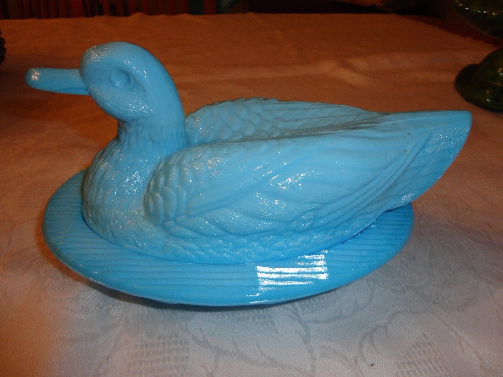 Title (ebay affiliate link): Antique Westmoreland Blue Milk Glass Mallard Duck Decoy 2 pc Covered Candy Dish
