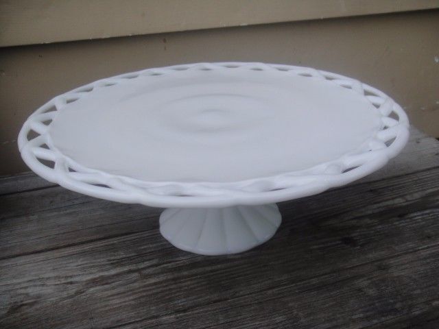 Title (ebay affiliate link): VTG PITMAN DREITZER COLONY OPEN LACE MILK GLASS PEDESTAL CAKE STAND 14" Plate