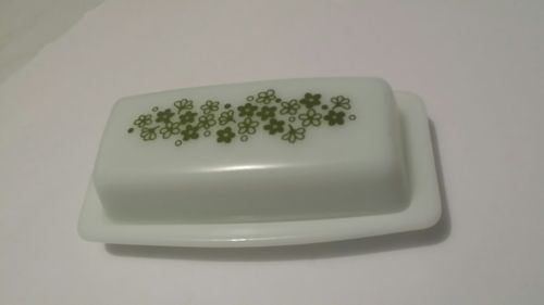 Pyrex Ovenware Milkglass ButterDish Green Flowers
