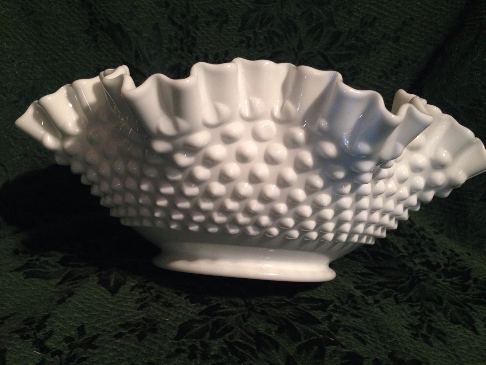 Vintage Round Double-Crimped Bowl in Hobnail Milk Glass by Fenton