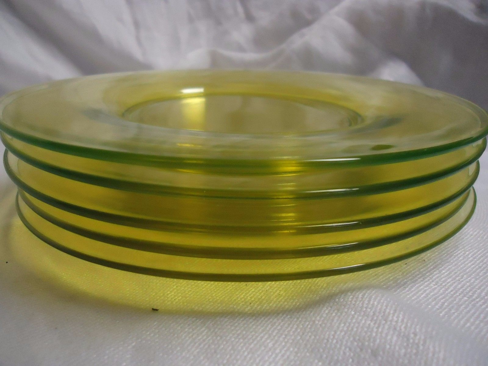 Title (ebay affiliate link): LOT of 5 VASELINE Glass PLATES Yellow-Green DEPRESSION ERA