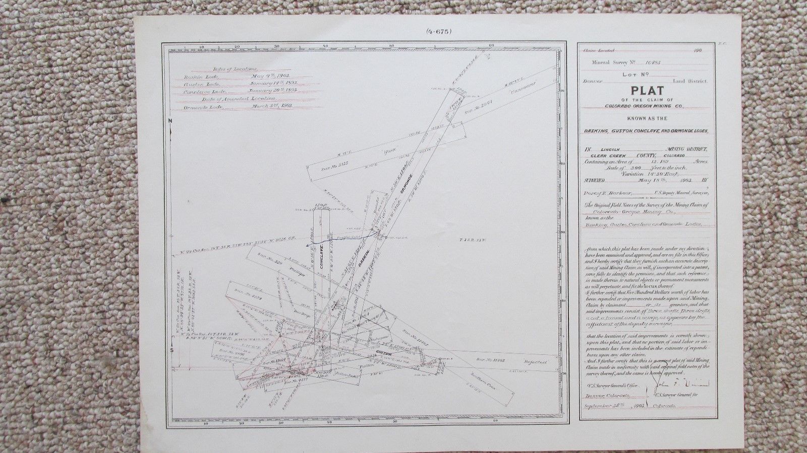 Title (ebay affiliate link): 1903 Colorado-Oregon Mining Company Mine Claim Plat-Clear Creek County Colorado