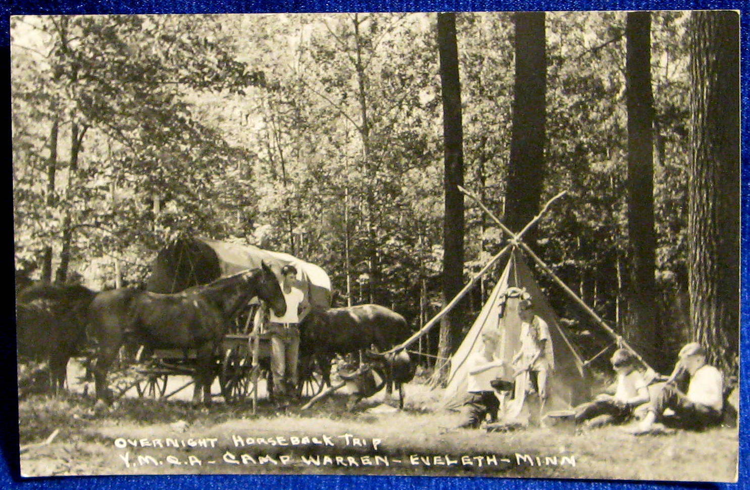 Title (ebay affiliate link): Ca 1940s RPPC Real Photo Overnight Horseback Trip YMCA Camp Warren Eveleth MN