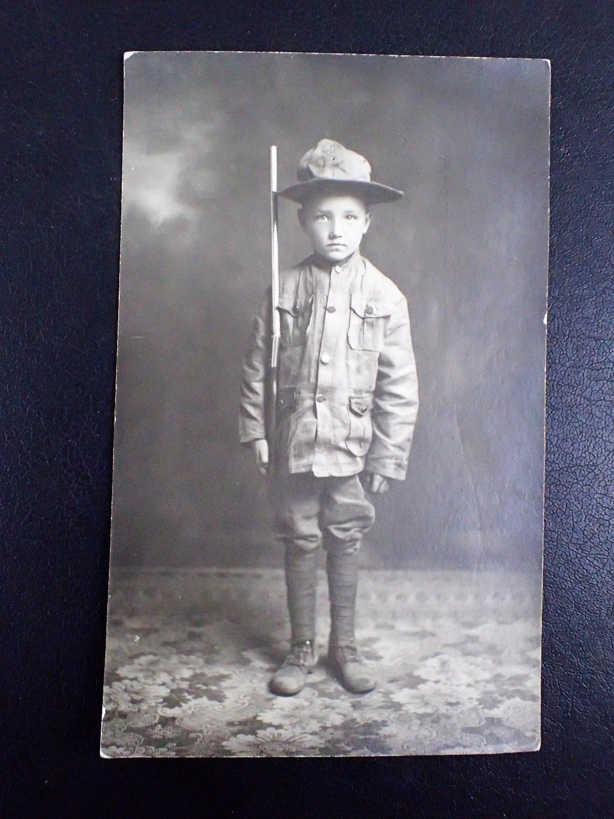 Title (ebay affiliate link): VINTAGE RPPC BOY DRESSED AS WWII DOUGHBOY ID''D AS LEVON DUNFORD 6 YEARS