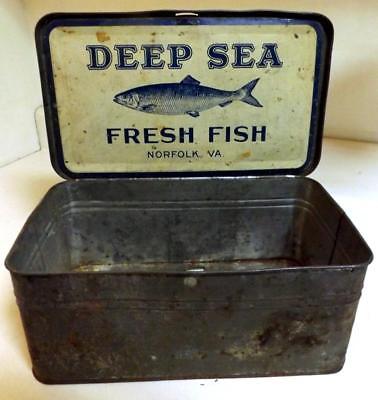 Title (ebay affiliate link): Antique Tin 7x12" DEEP SEA FRESH FISH Norfolk VA Old Seafood Shipping Box c1920s