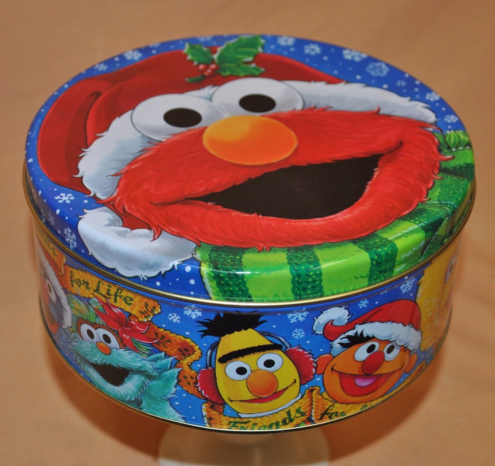 Title (ebay affiliate link): Metal Tin Can Container Christmas Gift Box With Lid Sesame Street Friends 4 Life