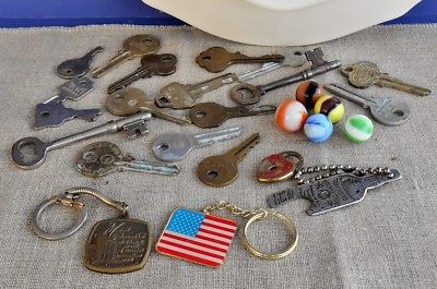 Title (ebay affiliate link): Antique Vintage Junk Drawer Lot Keys Marbles Key Chains Bottle Opener 26 pieces