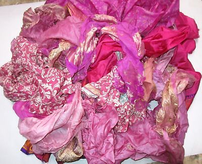 LOT PURE SILK Antique Vintage Sari REMNANT Fabrics 100 GRAMS Pink CRAFT DOLL NR