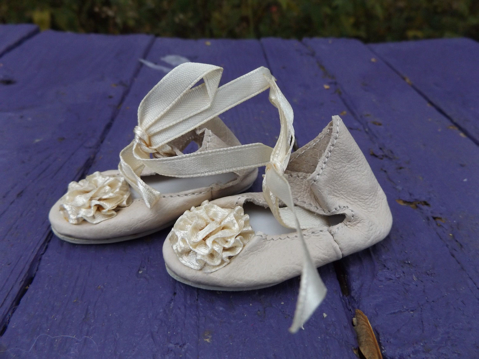 Title (ebay affiliate link): Off White Leather French Style 70mm Shoes For Antique Bisque Doll