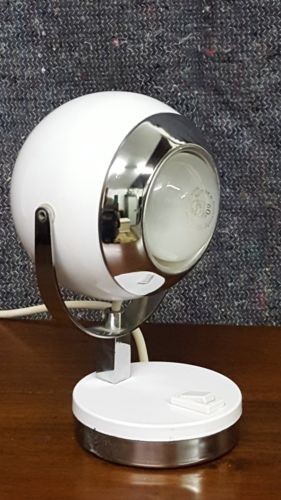 VINTAGE WHITE CHROME EYEBALL TABLE / DESK LAMP