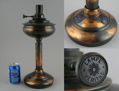 Antique Art Nouveau Arts Crafts German Veritas Copper Oil Lamp Ruskin Cabochons