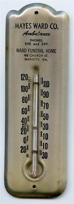 Mayes Ward Ambulance Funeral Home Vtg 1950s Advertising Thermometer MARIETTA GA