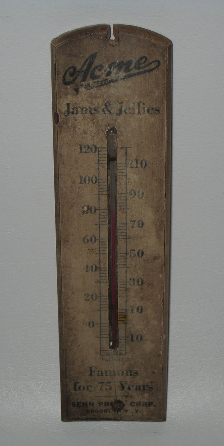 Vintage Acme Jams & Jellies Wooden Wood Advertising Thermometer Sign HC44