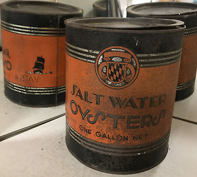 SALT WATER ONE GALLON OYSTER TIN Vintage