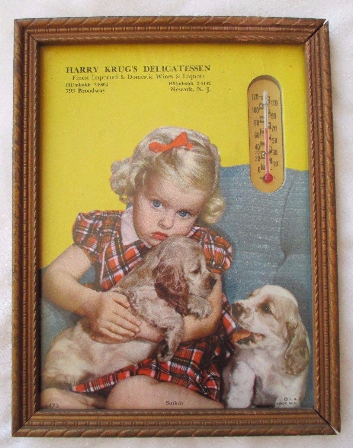 Title (ebay affiliate link): Vtg Picture Advertisement Thermometer Krug''s Deli Newark NJ Little Girl 2 Dogs