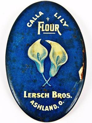 ANTIQUE CALLA LILY FLOUR, LERSCH BROS., ASHLAND, OHIO CELLULOID POCKET MIRROR