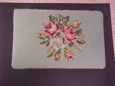 Antique Needlepoint Tapestry Foot Stool Rose Floral