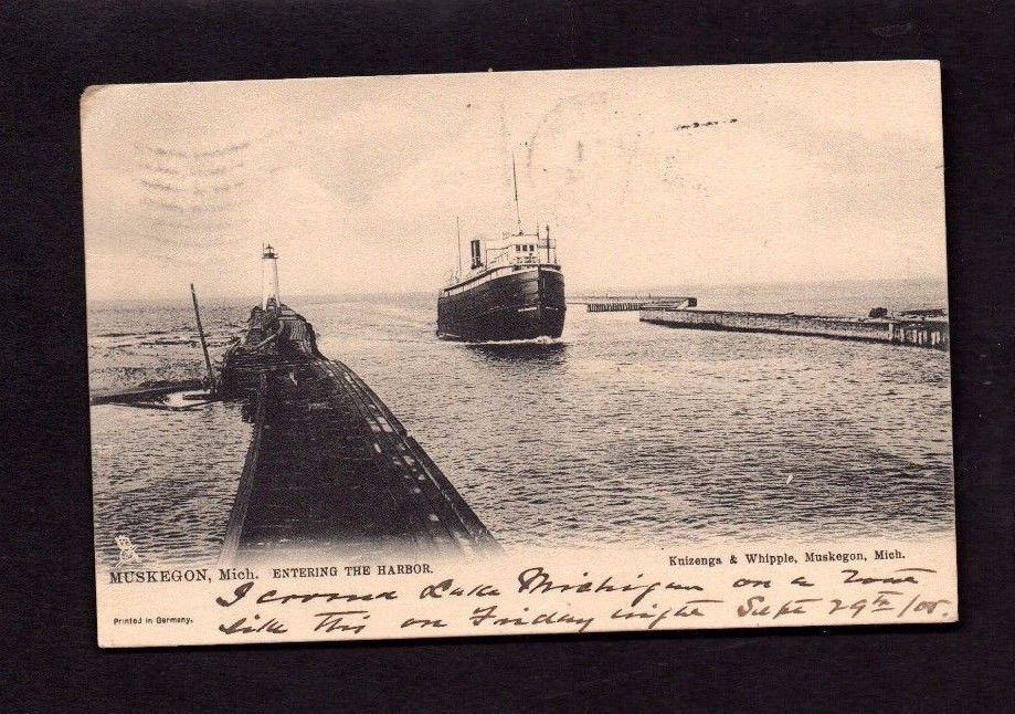Title (ebay affiliate link): Postcard 1905 Raphael Tuck Muskegon MI Ship Entering The Harbor *3586