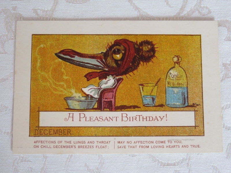 Title (ebay affiliate link): Vintage Birthday Postcard, December, L.Prang & Co., 1881