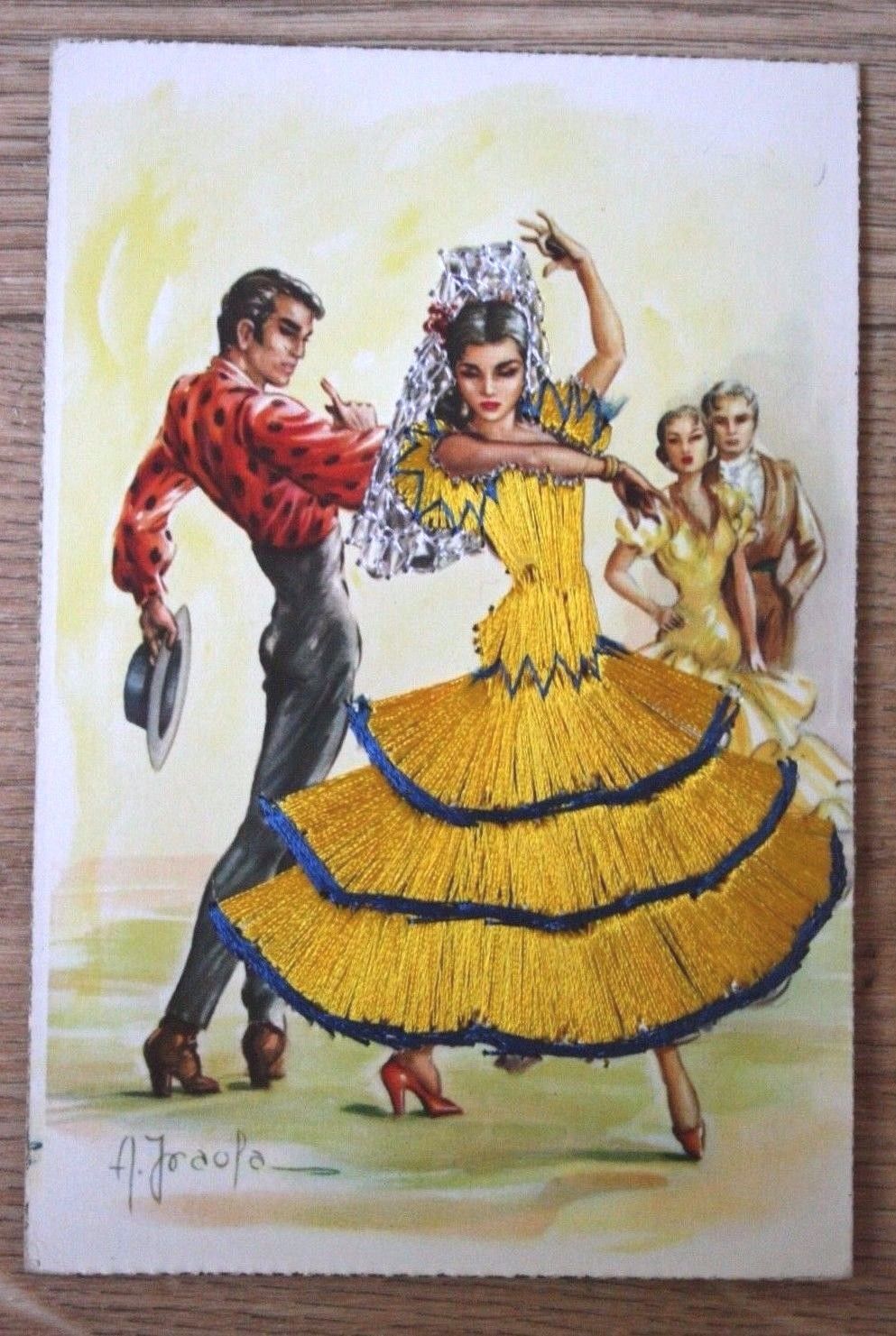Title (ebay affiliate link): Spanish Silk Postcard - Flamenco Dancers - Spain - Valencia.