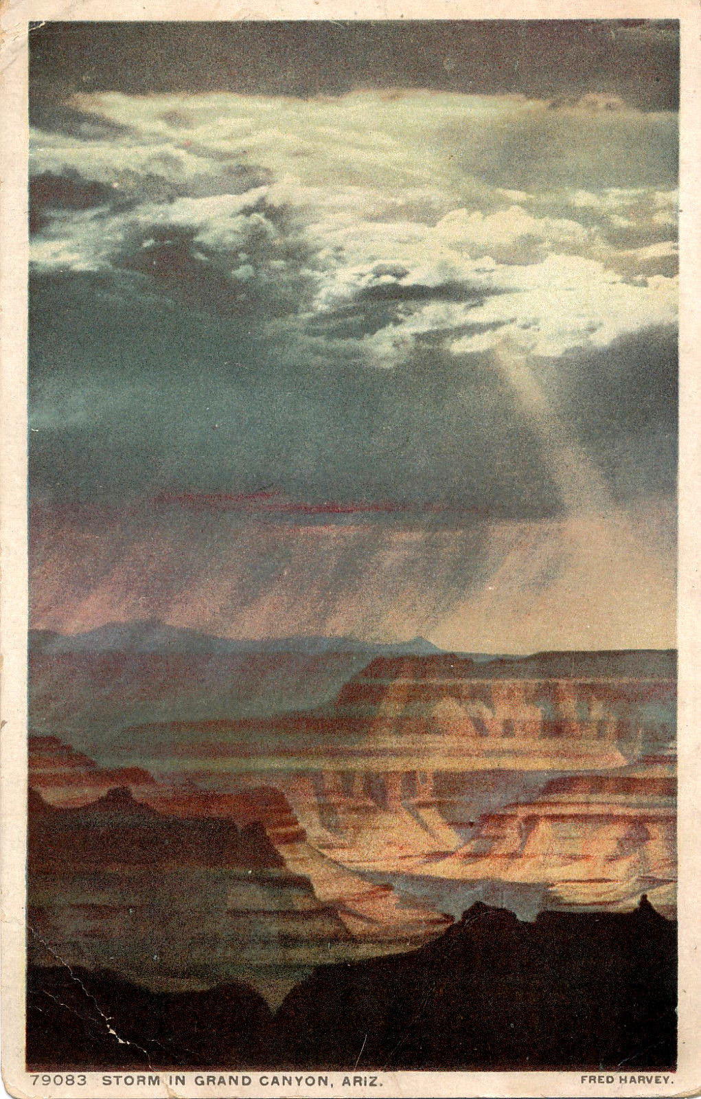 Title (ebay affiliate link): STORM IN GRAND CANYON, ARIZ. AZ. FRED HARVEY. ARTISTIC SCENE. CA 1910.