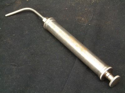 Oil Gun Nickel Plated On Brass measures 10" long.