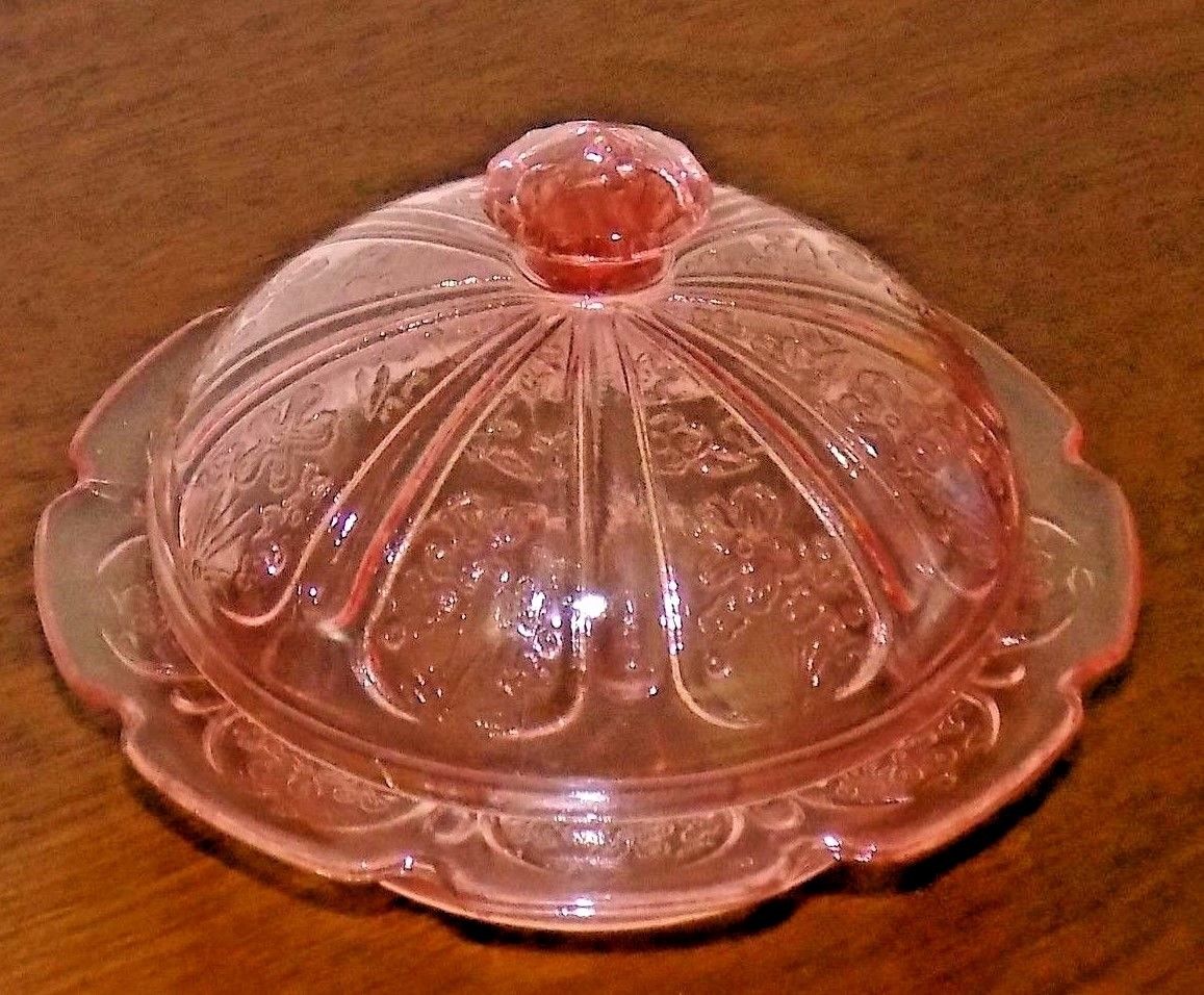 Title (ebay affiliate link): Pink Cherry Blossom Butter Dish Repro Retro Depression Glass