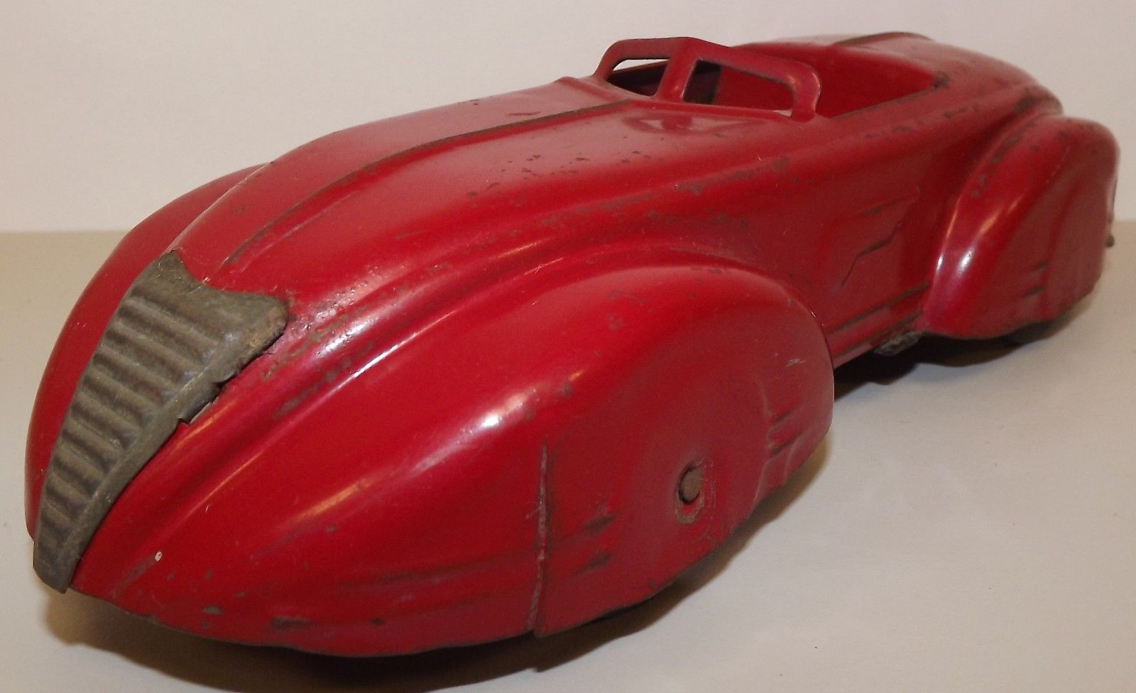 Title (ebay affiliate link): Vintage 1930''s WYANDOTTE FUTURISTIC PONTIAC pressed steel 10" car, spring driven