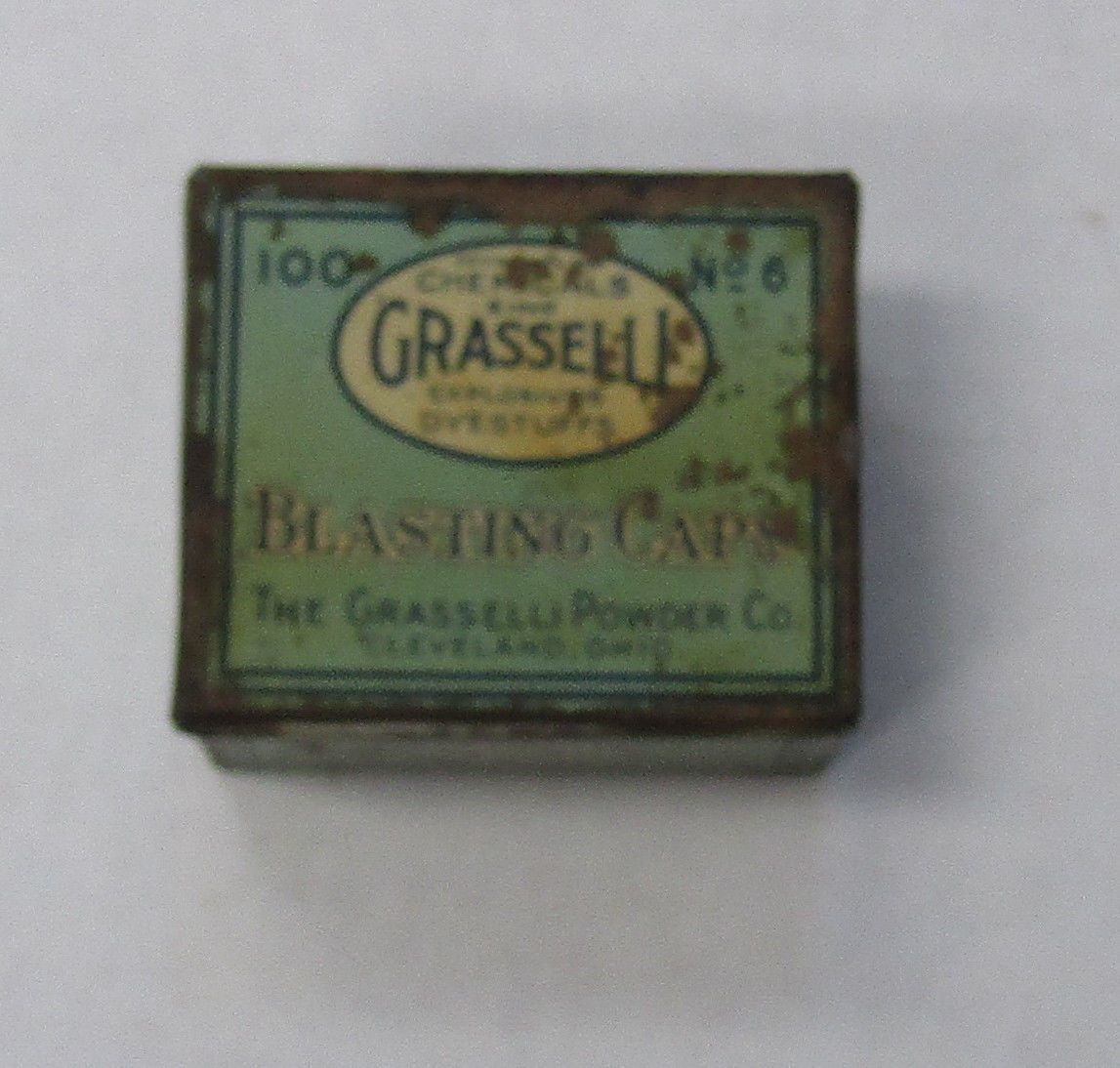 BLASTING CAP TIN, GRASSELLI, 100 NO. 6. MINING