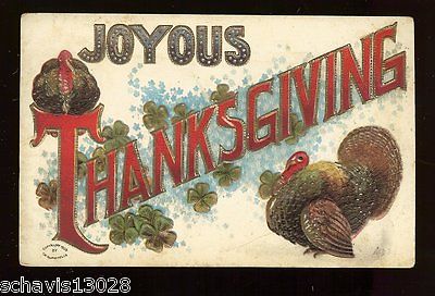 Title (ebay affiliate link): Joyous Thanksgiving 1908 Ullman Old Embossed Antique Lancaster Ohio Postcard 448