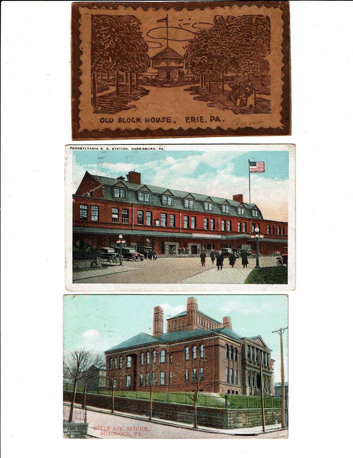 3 Card Pennsylvania Lot, Leather Card--Erie, Braddock School, Harrisburg RR!